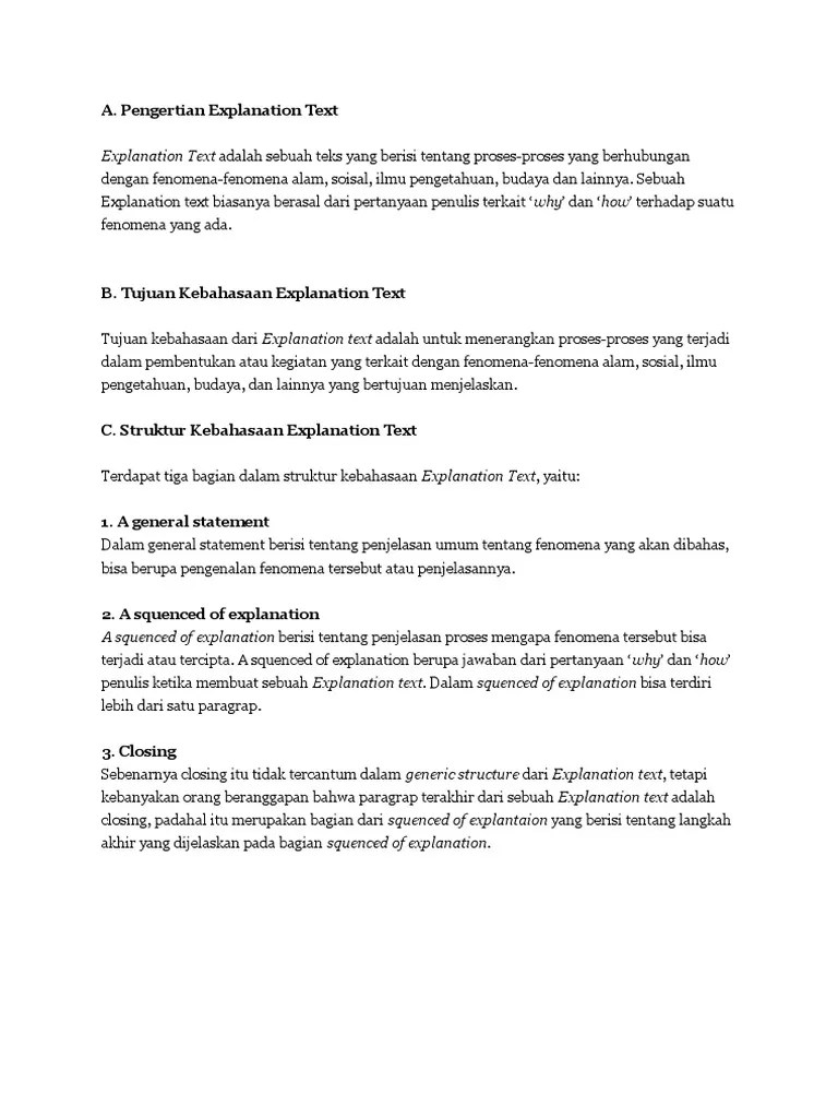 explanation text pengertian structure ciri contoh dan latihan soal.