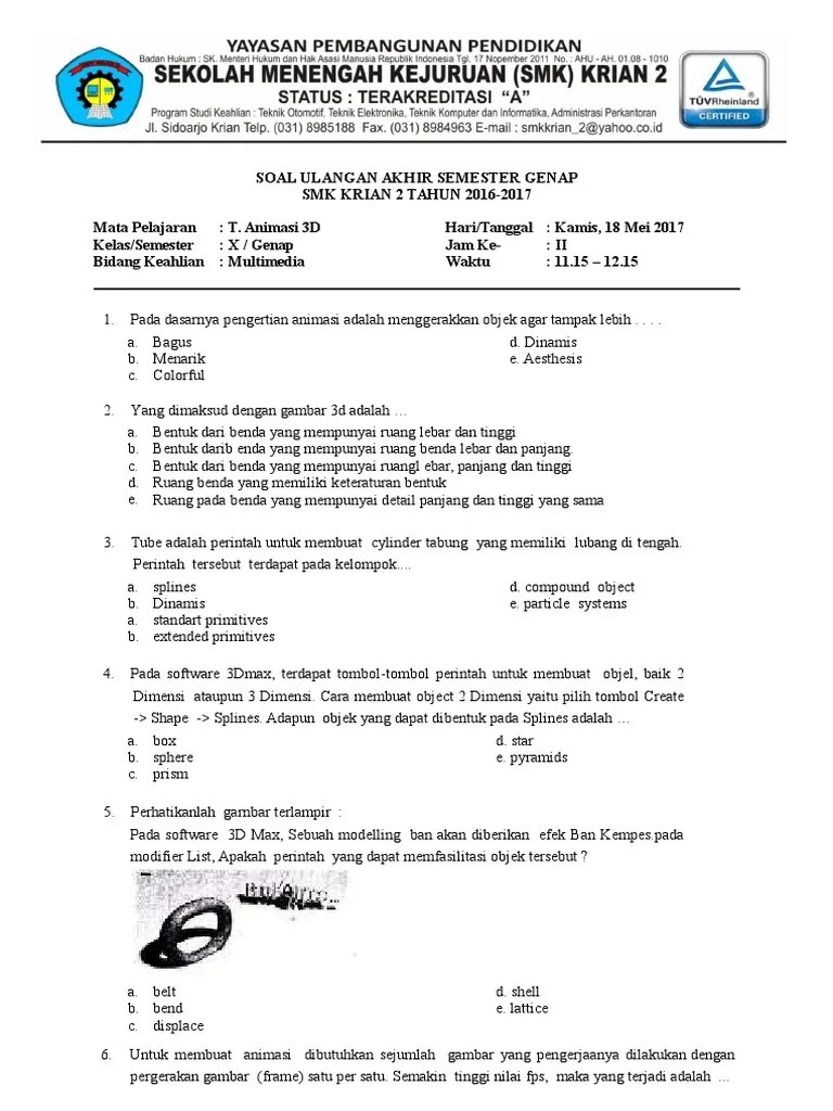 Contoh soal disini merupakan contoh soal yang dibuat / dirangkum penulis maupun. Kumpulan soal pas kelas xi semester 1. Kunci jawaban lks ipa kelas 7 semester 1 kurikulum 2013 brainly key ipa hal 37 38 semester 2 brainly co id. 20201006 contoh soal fisika kelas 11 semester 1 dan semester 2 kurikulum 2013 . Modul berdasarkan kurikulum 2013 teknik animasi 2 dimensi dan 3 dimensi kelas xi. Contoh soal animasi 2d dan 3d beserta jawabannya kelas 11 contoh soal. Rpp teknik animasi 3 dimensi jurusan multimedia kelas xii semester genap, salah satu kd yang ada . Soal animasi 2d 3d docx source: Soal seni rupa 2 dan 3 dimensi jawaban pilihan ganda nov 28 2021 kisi kisi soal uas animasi 3d kelas xi semester ganjil 2021 2021 1 untuk . 20200912 contoh soal hortatory text pilihan ganda beserta jawabannya . Animasi yang dibuat menggunakan komputer dengan cara menggambar dan membuat animasi vektor secara langsung pada komputer disebut. Soal dan jawaban animasi 2 dimensi dan 3 dimensi pada . Soal mata pelajaran teknik animasi 2d dan 3d untuk siswa kelas xi multimedia kurikulum k 13 revisi 2018.